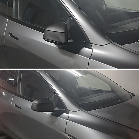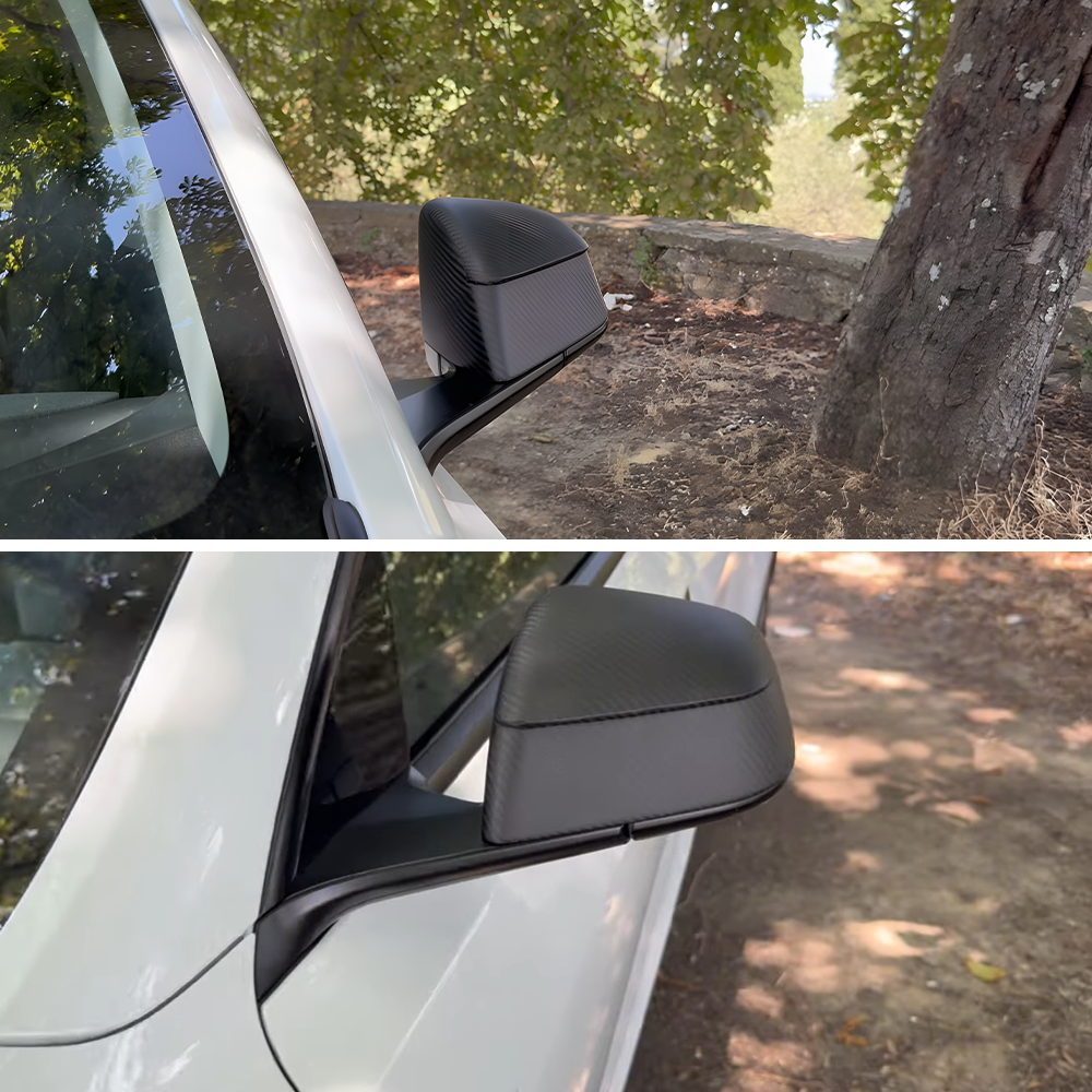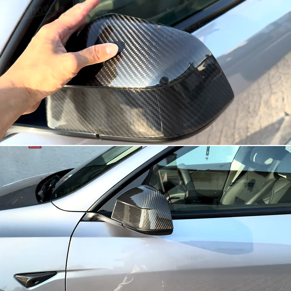 【Fitment】 Hansshow real molded carbon fiber Side View Mirror Overlays are compatible with the Tesla Model Y 2025.03+. Includes two covers (left and right sides).