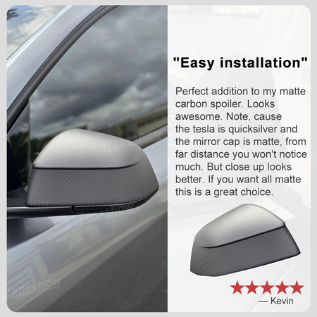 Perfect addition to my matte carbon spoiler. Looks awesome. Note, cause the tesla is quicksilver and the mirror cap is matte, from far distance you won't notice much. But close up looks better. If you want all matte this is a great choice.