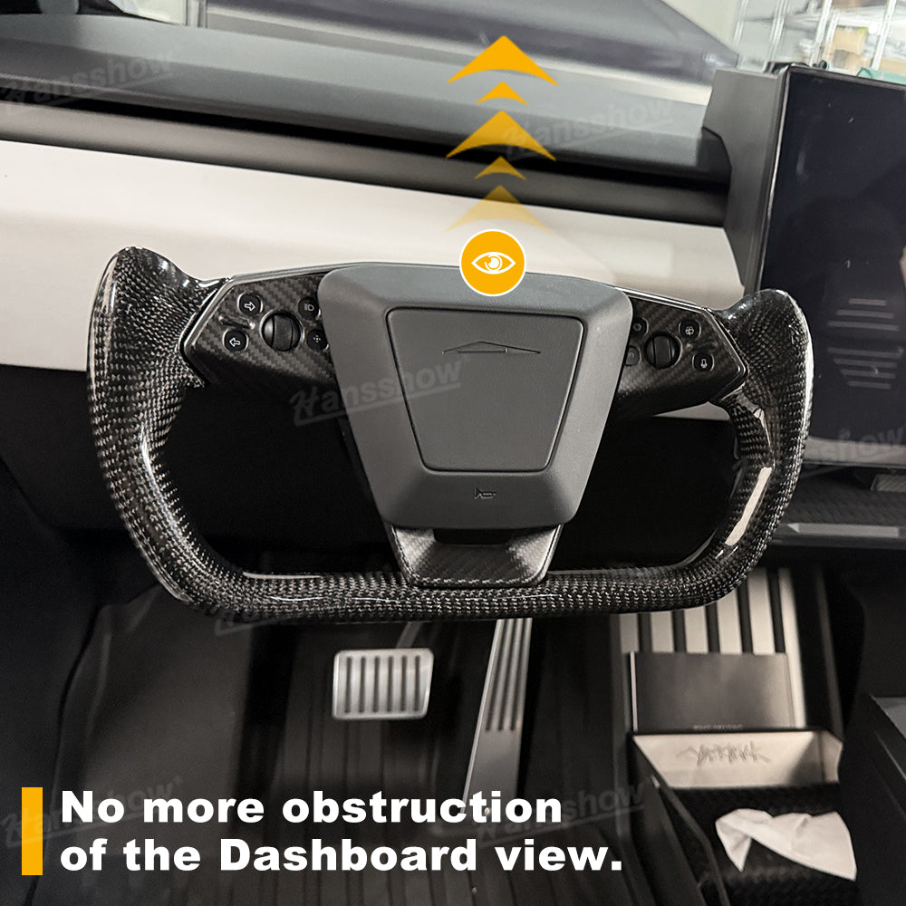 Say goodbye to bulky steering wheels blocking your screen. Cybertruck Yoke Steering Wheel opens up a clear, wide-angle view of your Tesla’s dashboard and road ahead — especially useful for seeing driving data and navigation without taking your eyes off the road.