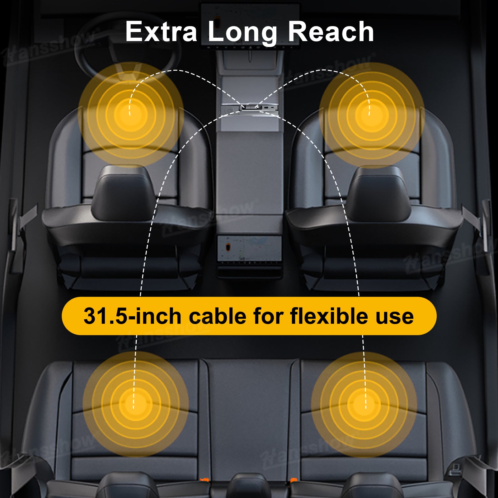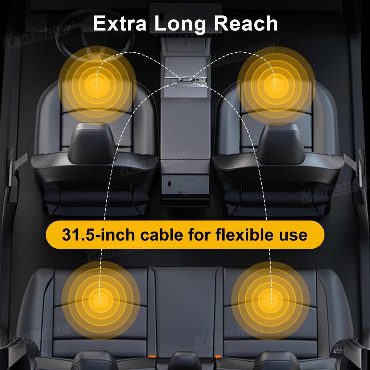31.5 Inch Extended Reach for Front and Rear Seats: Charge from any seat with ease. The extra long pull-out cable reaches passengers in the back row so everyone can stay powered on road trips, daily commutes or ridesharing. No adapters or extra cables needed.