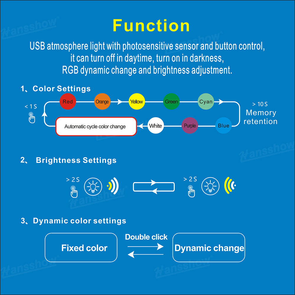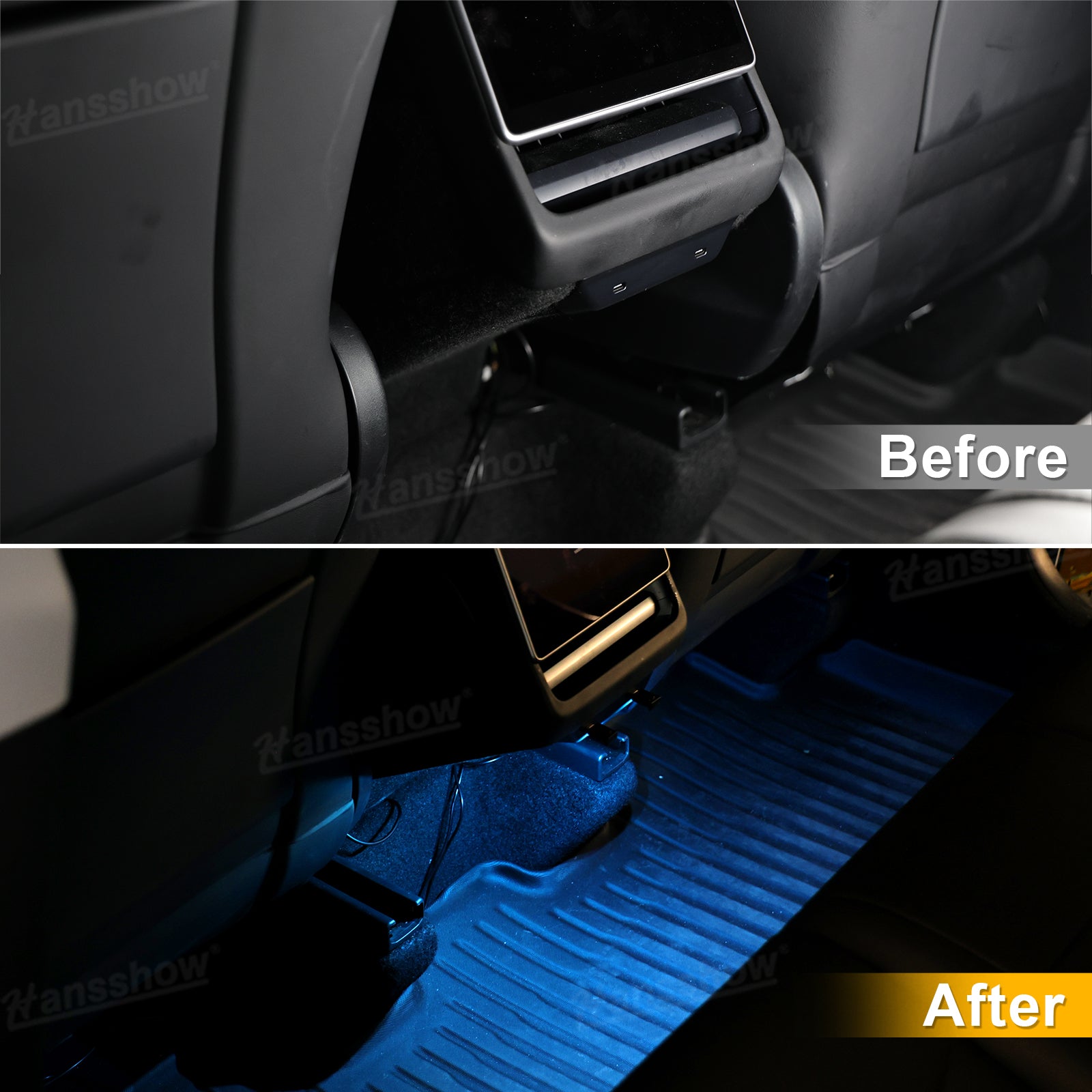Automatic Light Sensor Control: Hansshow Backseat LED Upgrade Kit features a built-in photosensitive sensor that detects ambient brightness, automatically turning the lights on in dim environments and off in bright conditions. Sensitivity has been upgraded for more precise response and extended illumination time.