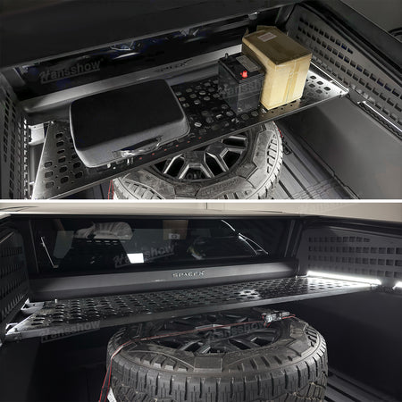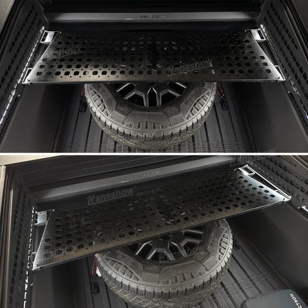 Increased Storage Space: Hansshow cybertruck cargo truck bed divider could maximizes vertical space without consuming too much horizontal room, creating distinct compartments in your truck bed. You can easily organize tools, gear, and miscellaneous items, significantly enhancing overall storage capacity.