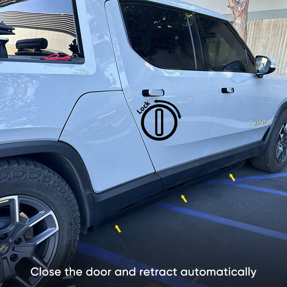 The automatic retractable running boards facilitates easy and secure entry and exit, particularly beneficial for Rivian R1T with elevated chassis.