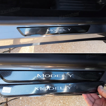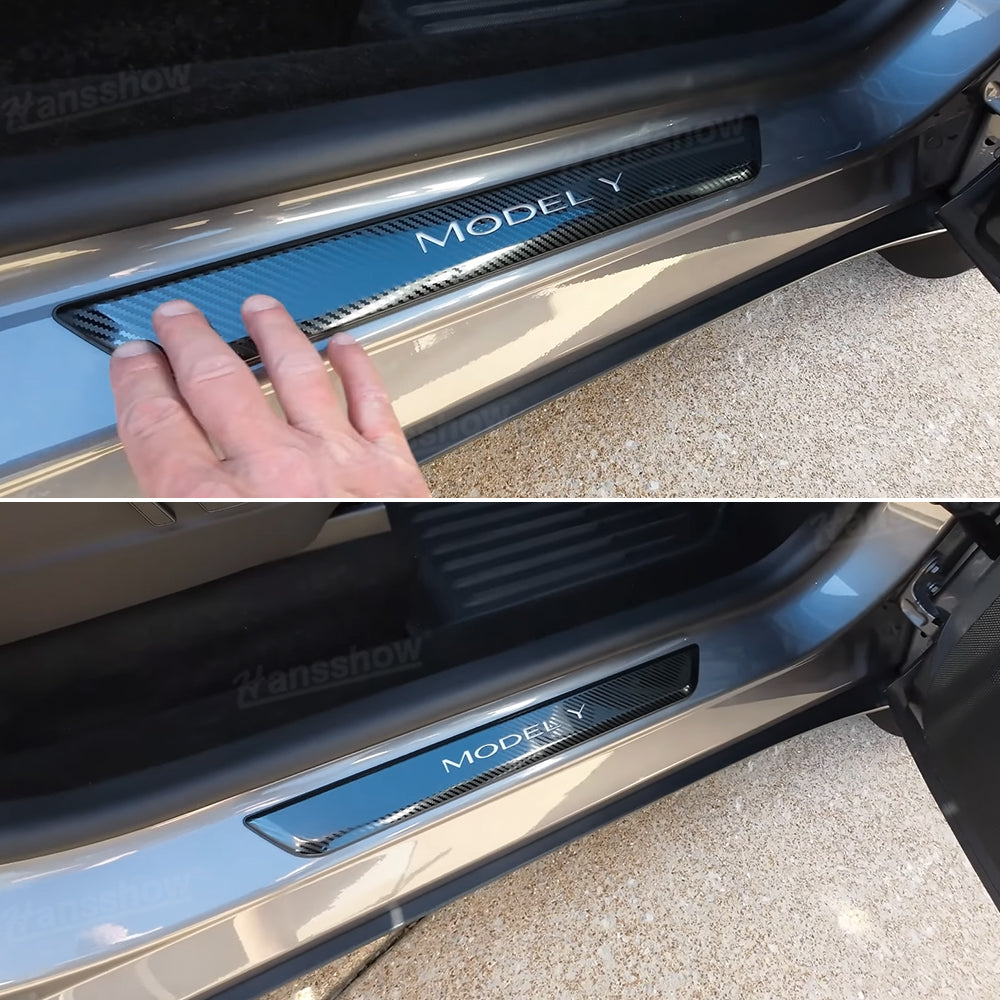• Protects Your Door Sills from Scratches and Damage: These door sill protectors are designed to shield the vulnerable door sills from everyday wear and tear, such as scuffs, scratches, and dirt. Whether you're entering or exiting the vehicle, the durable material acts as a barrier, helping to maintain the pristine condition of your Model Y Juniper’s interior.