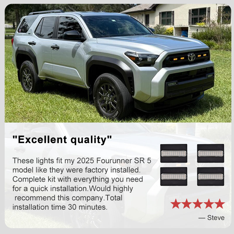 Custom Fit for 2025 4Runner SR5, TRD & Limited Models: Designed exclusively for the 2025 Toyota 4Runner, this grille light set is a perfect match for SR5, all TRD trims, and Limited editions.