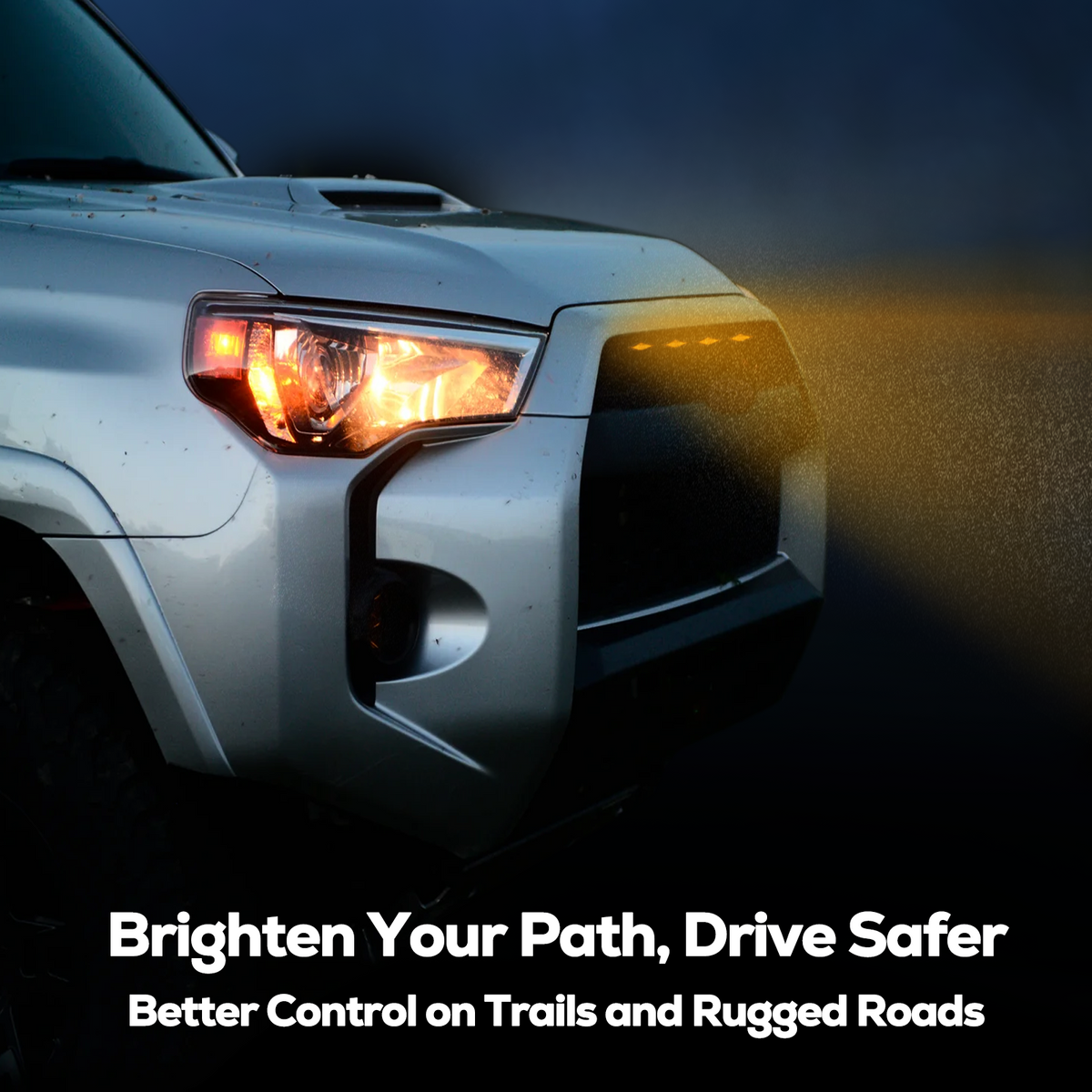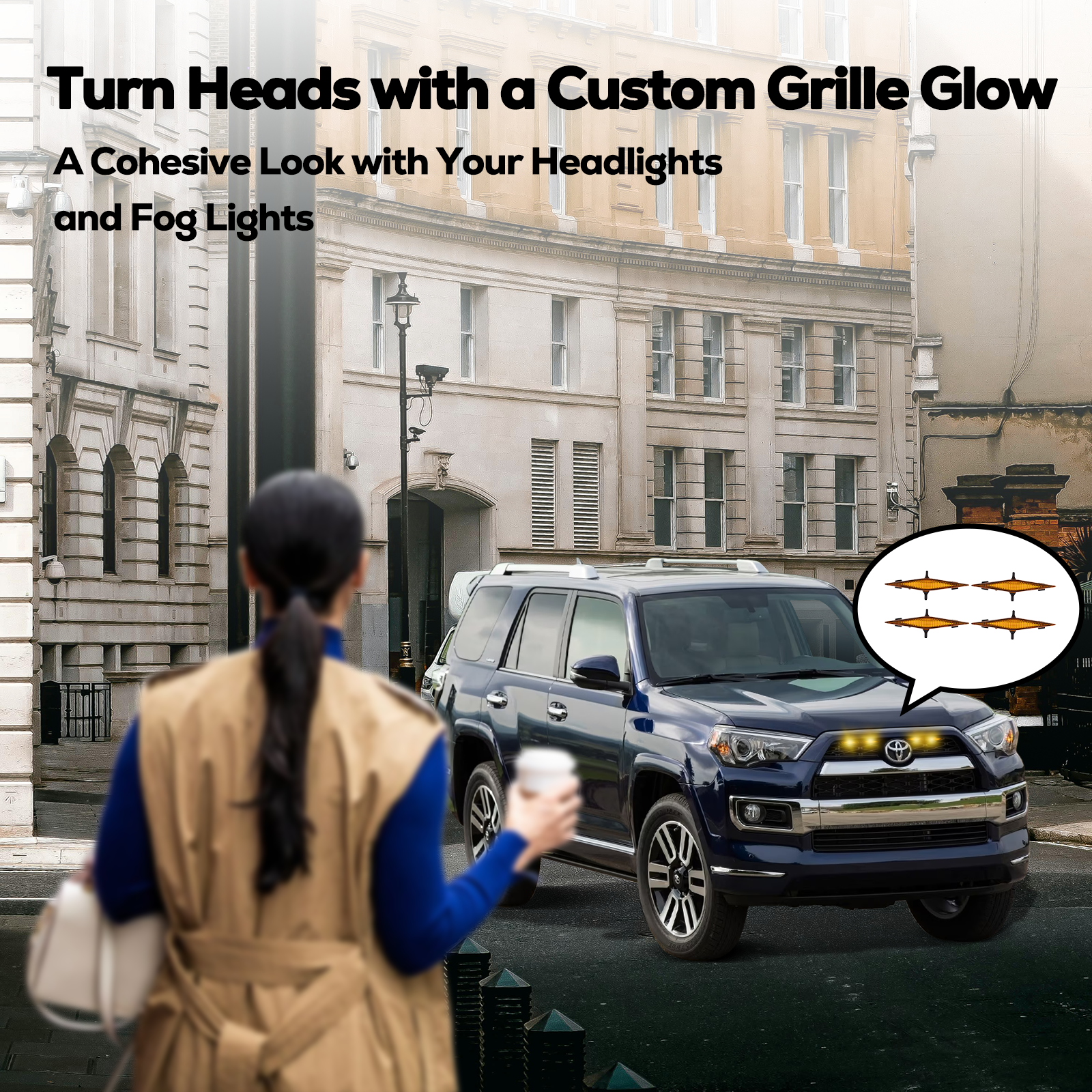No-Drill, Hassle-Free Installation: Enjoy a plug-and-play upgrade with a design that requires zero cutting or permanent modifications. 4Runner raptor lights integrate seamlessly into the factory grille—just mount, connect, and hit the road. It’s a clean install that protects your vehicle’s value. Package Includes 4 grille lights (1 set)