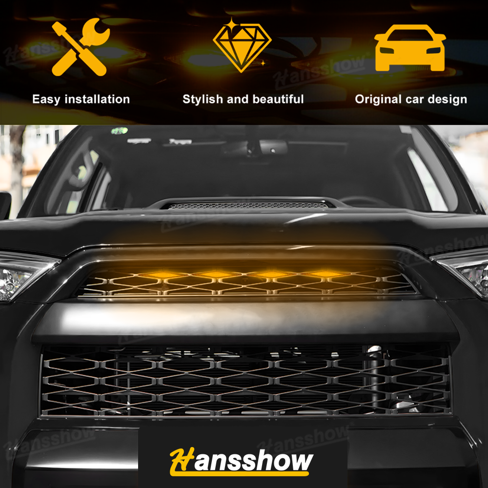 Striking Gem-Cut Design with 18 Ultra-Bright LEDs: Featuring a bold gem-cut pattern and 18 high-output LED beads, Hansshow front grille lights don’t just light up the road—it commands attention. The premium styling gives an aggressive look to your 4Runner 2025+, while the brilliant illumination boosts visibility for safer nighttime and off-road driving.