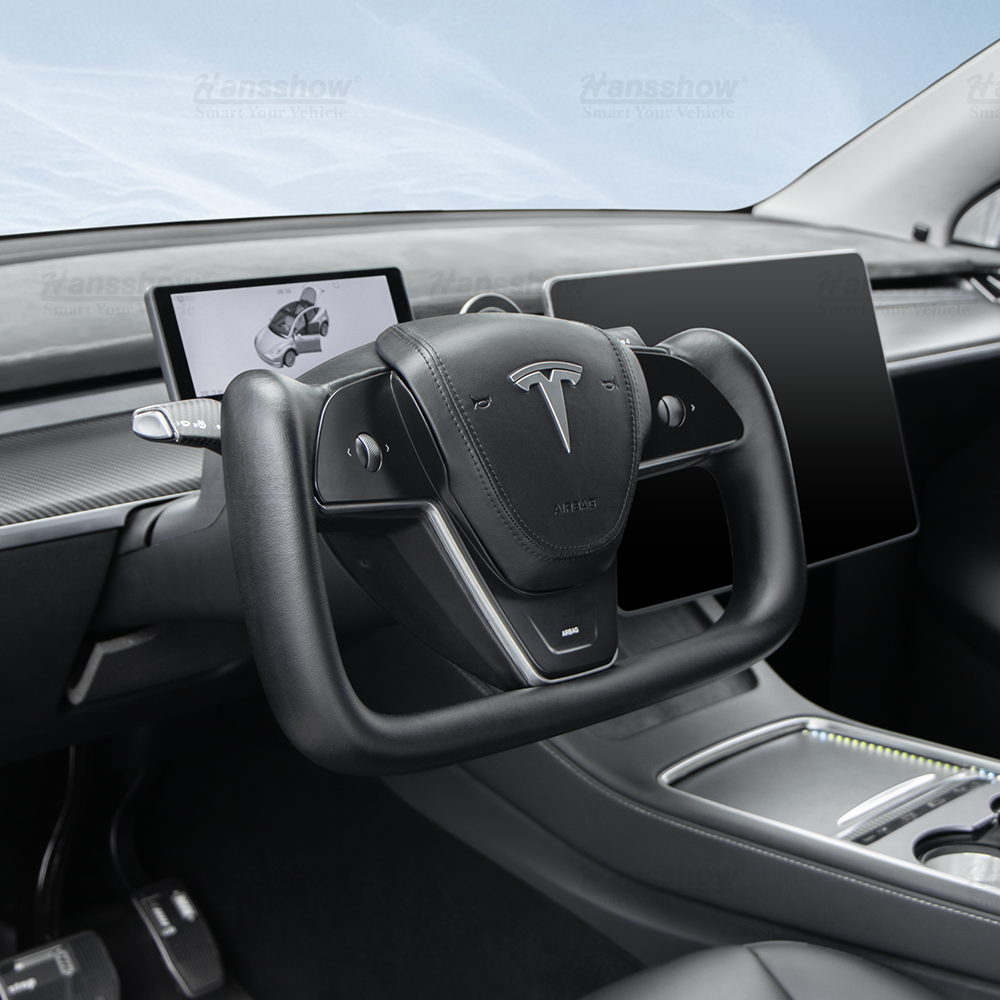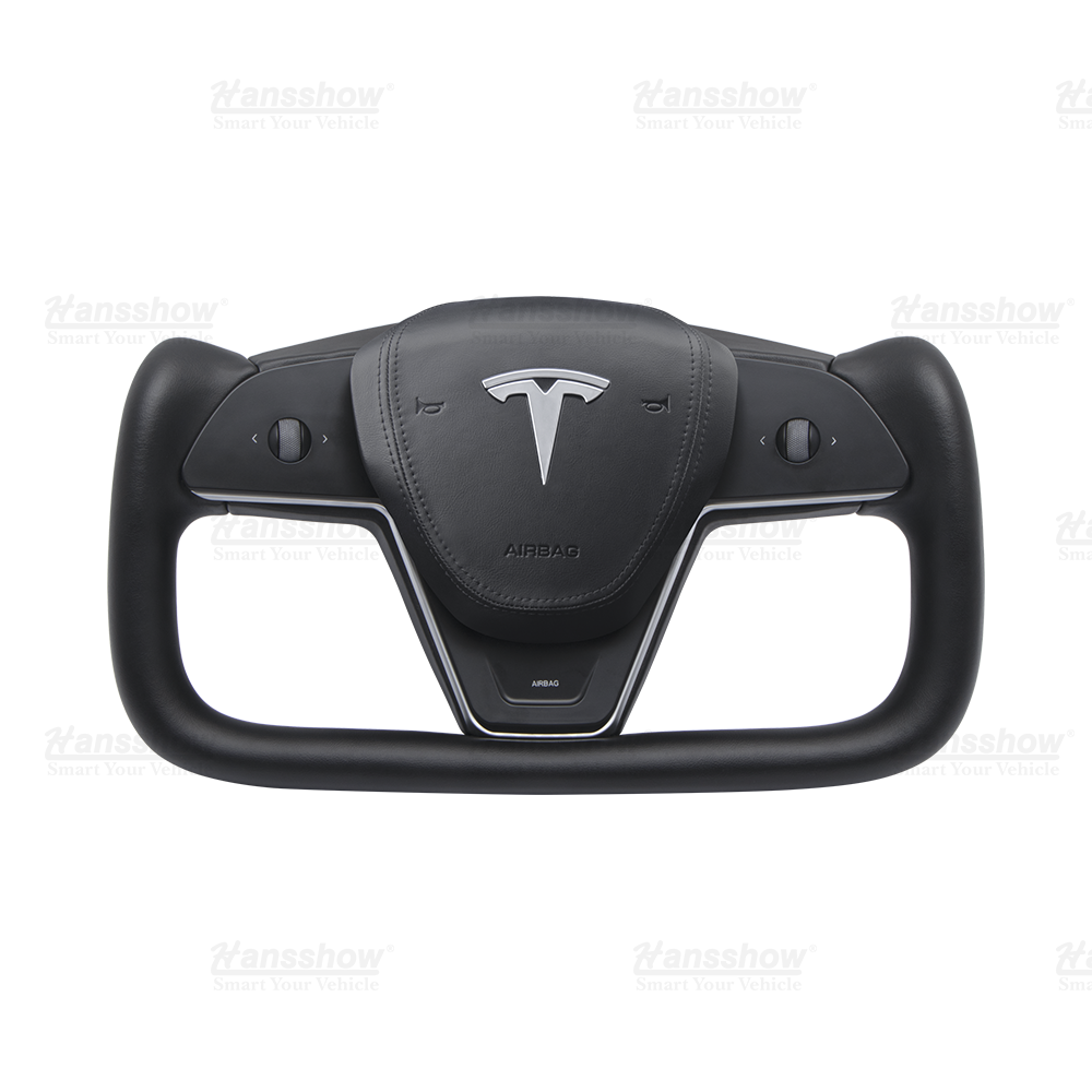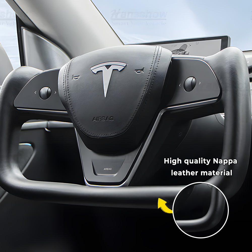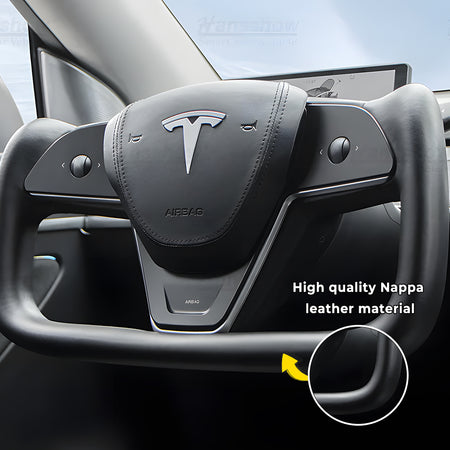 Hansshow Model 3/Y Nappa Black Leather Yoke Steering Wheel For Tesla (Inspired by Model X/S Yoke)