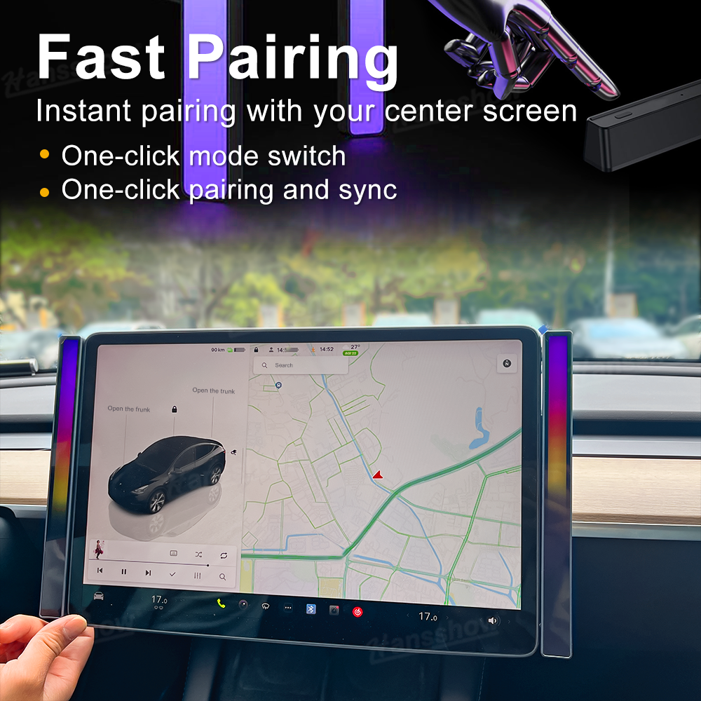 Syncs with Music: Transform your Tesla's cabin into a rolling light show. Hansshow ambient lights react in real time to your music, pulsing and shifting with every beat and bass drop. It’s not just lighting—it’s a vibe that moves with your music.