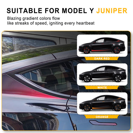 Premium Gradient Vinyl: Crafted using advanced silk-screen printing, Hansshow vinyl sticker decals feature a unique gradient design with transparent ends, seamlessly blending with any Model Y Juniper color. Built to last, they remain vibrant and resist fading for up to 5 years.