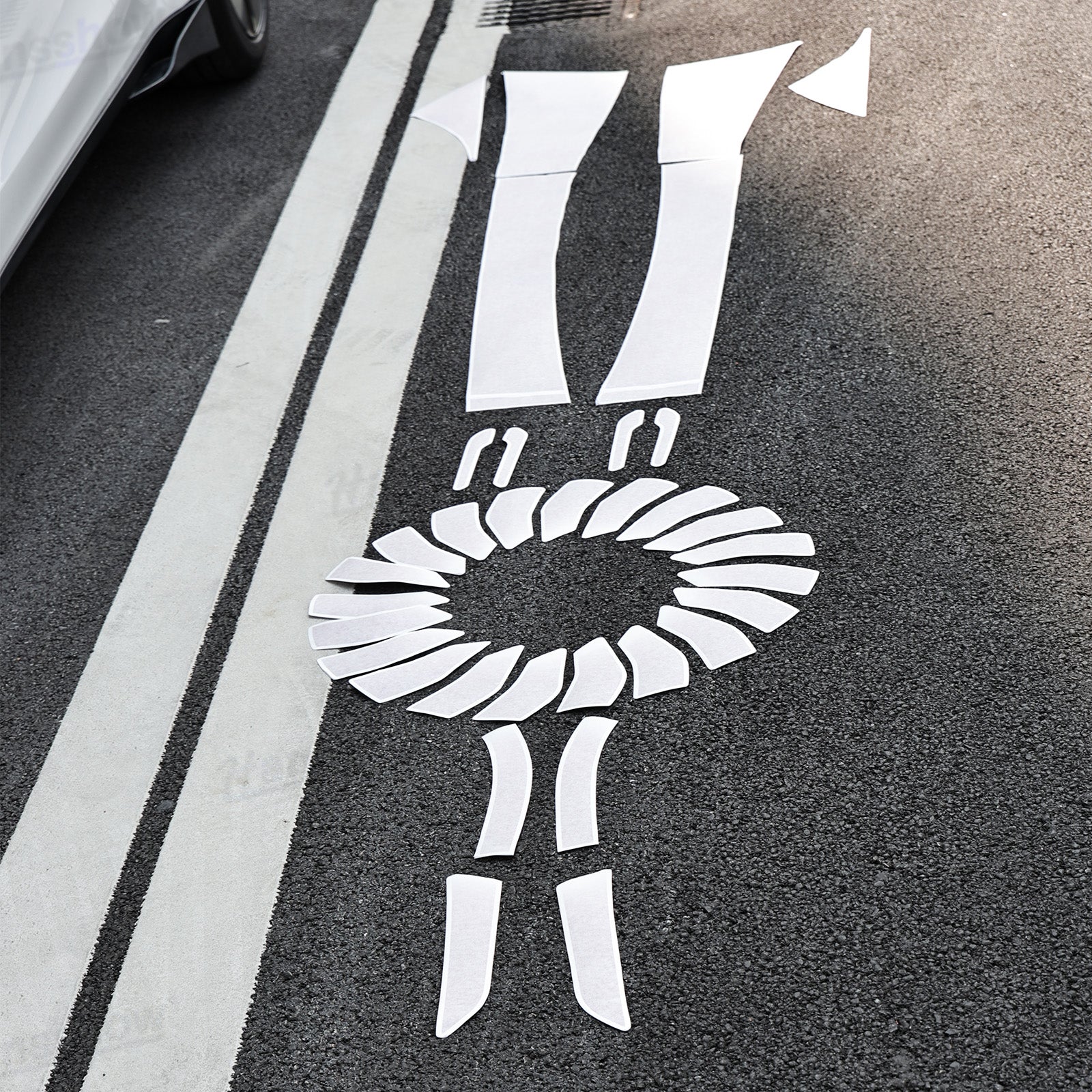 Complete Styling Kit: Each set includes 2 wind blade decals, 4 side body strips, 4 door handle decals, 2 rearview mirror decals, 2 rear triangle window pieces, and 20 wheel hub covers. A squeegee is included for smooth application.