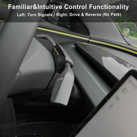 Disassembly-free Installation: Unlike traditional retrofit gear shift stalks that require disassembling the steering wheel column or rewiring, the upgraded Hanshow control stalk kit can be installed without any disassembly or damage. Installation takes just one minute, making the upgrade both fast and hassle-free. It does not interfere with any original factory components, which means your vehicle remains fully covered under the original warranty. Safer Gear Shifting: You can shift gears without looking down at the central screen, simply by using the gear lever. Hanshow's gear lever allows you to easily switch between Drive, Neutral, and Reverse, and engage Park with a single touch. No distractions, no delay. Drive smarter and safer by staying focused on the road and keeping your hands on the wheel. Symmetrical Design: The gear shift control stalk adopts a fully symmetrical left-right layout, meticulously crafted with precise proportions and curves that align with the original vehicle designs. This symmetrical design not only ensures visual balance but also enhances the overall harmony of the center console, making the cabin appear more orderly and refined. Intelligent Multi-Function Control: Hansshow multi-function stalk kit offers you a more intuitive driving experience. Simply double-press downward to activate the Autopilot mode and easily switch gears. Control key functions like the windshield wipers and lights with a touch, allowing quick response in emergencies and significantly enhancing driving safety. In addition, the system supports quick activation of extreme weather scene mode, enabling you to adapt instantly to harsh driving conditions. Without taking your eyes or hands off the steering wheel, you can directly adjust AR parameters through the control stalk.