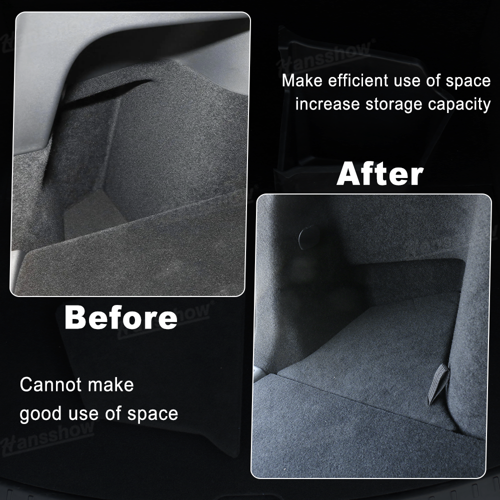 Perfect Fitment: Engineered with 1:1 precision for the 2025+ Tesla Model Y Juniper, Hansshow side trunk organizer fits like a glove. It installs seamlessly without affecting the trunk lid’s operation or taking up valuable cargo space — just a clean, factory-style fit you can trust.