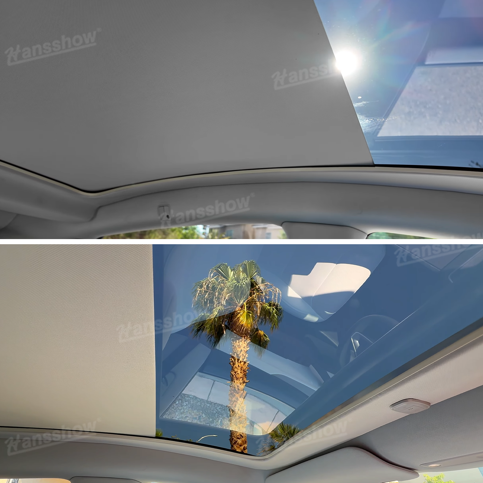【Perfect Fit】Custom-made for Model Y Juniper 2025.03+, with a perfect color match for your stock headliner. Hansshow roof sunshade fits the original car glass roof precisely. The power sun shade 100% matches the Model Y Juniper glass roof, with no gaps or sagging.