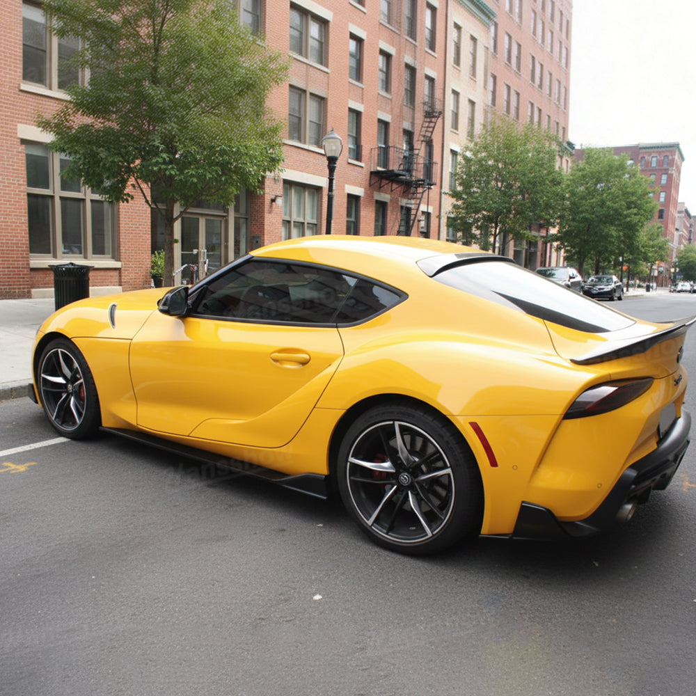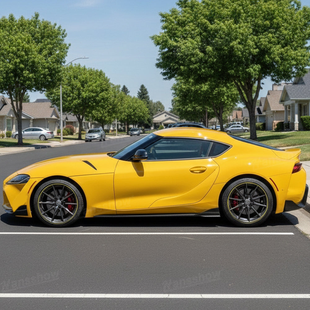 Exterior Upgrade: Carbon fiber style texture or sleek gloss black finish elevates the Supra’s side profile, creating a sportier, more aggressive, and fully customized look that stands out on the road.
