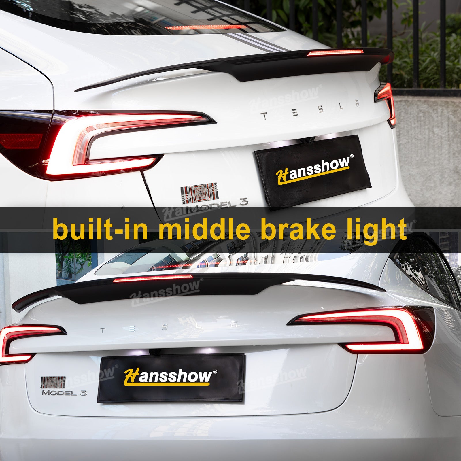 Model Y/3/3 Highland ABS Tail Spoiler Wing Rear Trunk Lip Lid With Middle Brake Light for Tesla|Hansshow