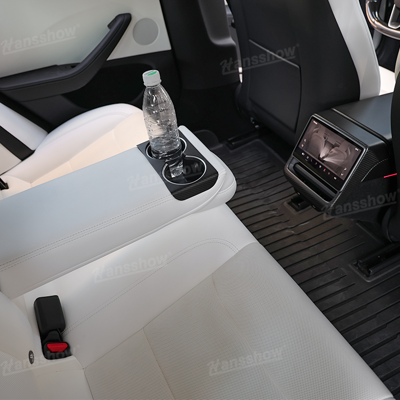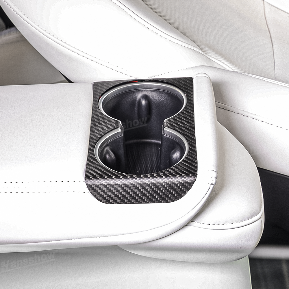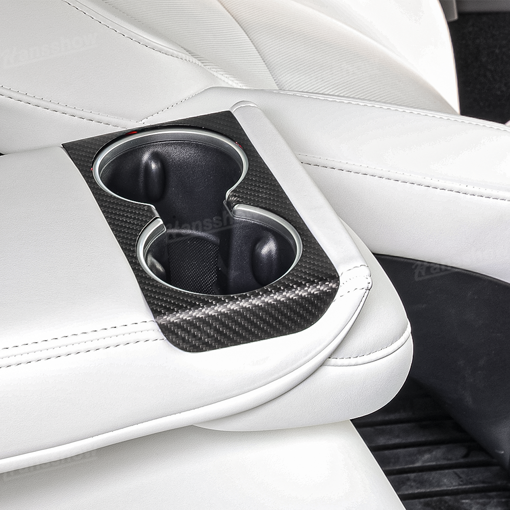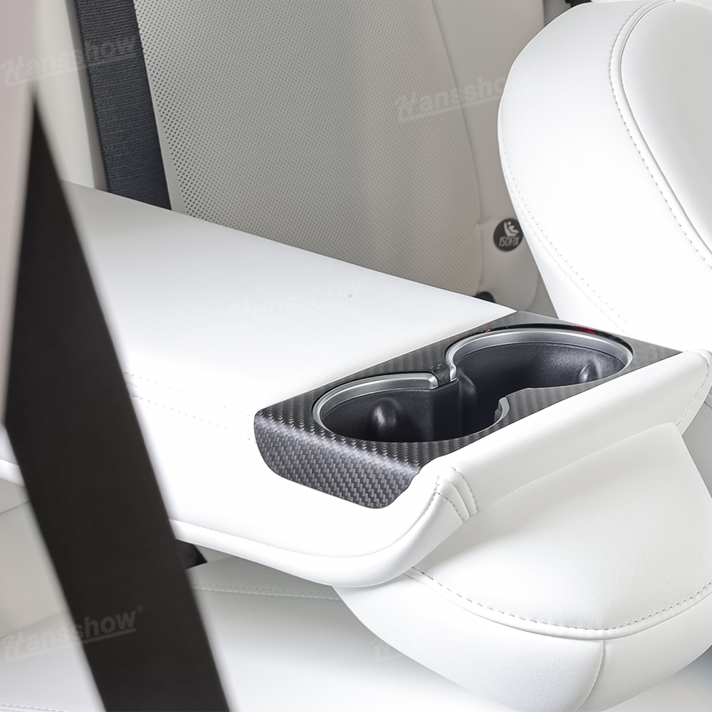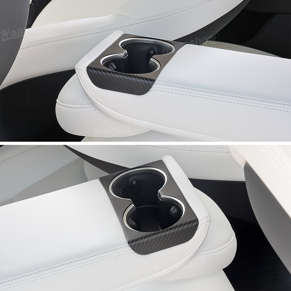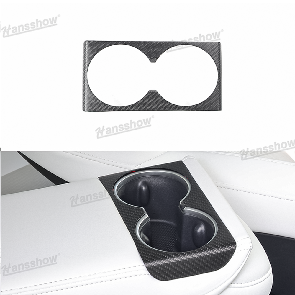 Tesla Model 3 Highland Cup Holder Trim Rear Armrest Real Carbon Fiber Cover | Hansshow