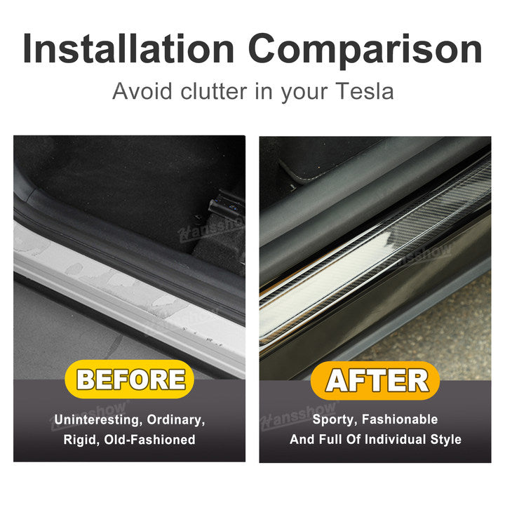 Tesla Model Y/3 Real Carbon Fiber Door Sill Covers Protector Welcome Pedal|Hansshow