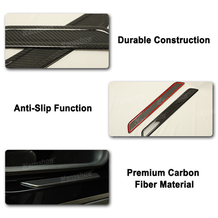 • Premium Carbon Fiber Material:Fabricated from top-grade real carbon fiber material, these door sill protectors offer durability and imbue your Tesla with a sporty essence that is bound to capture attention. Authentic carbon fiber construction ensures a high-quality finish.