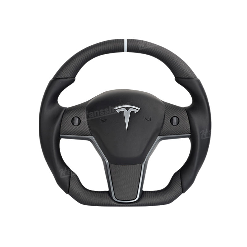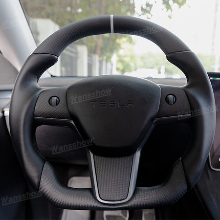 Tesla Model Y/3 Real Carbon Fiber Steering Wheel With Nappa Leather Grip-Heating Function|Hansshow