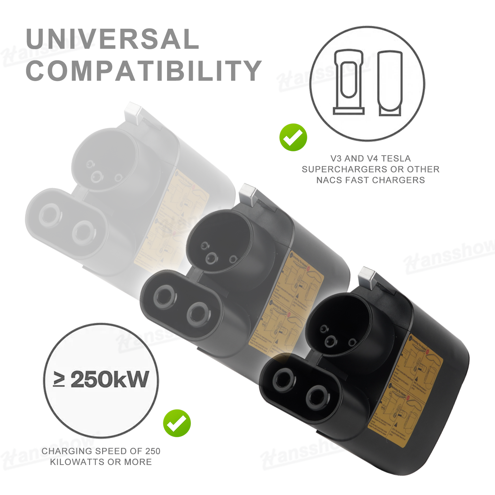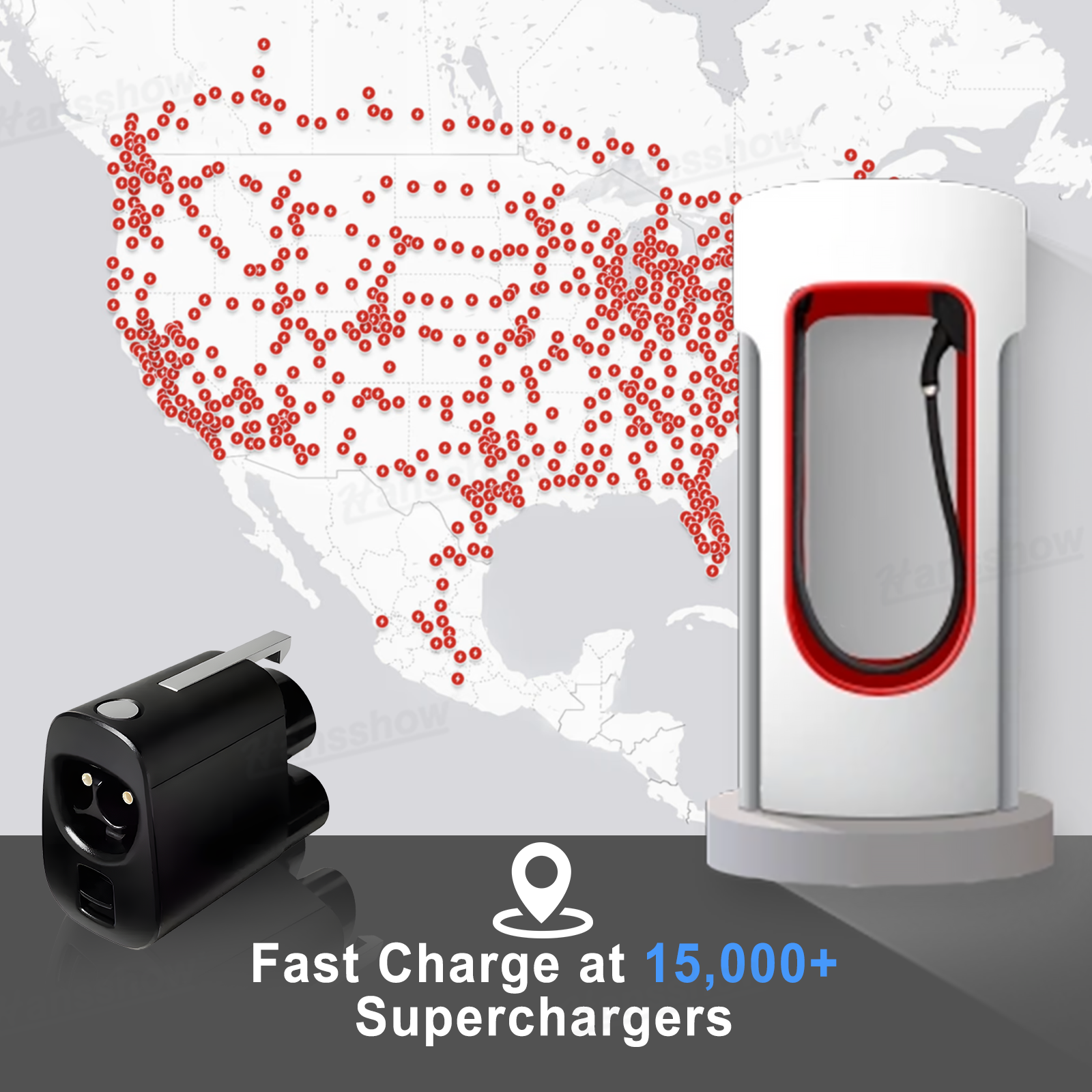 Expanded Charging Options: The Hansshow charger adapter provides access to over 15,000 V3 and V4 Tesla Supercharger ports, enabling fast charging at numerous locations. This NACS to CCS1 adapter allows non-Tesla electric vehicles with Supercharger access to seamlessly connect to Tesla's fast charging network.
