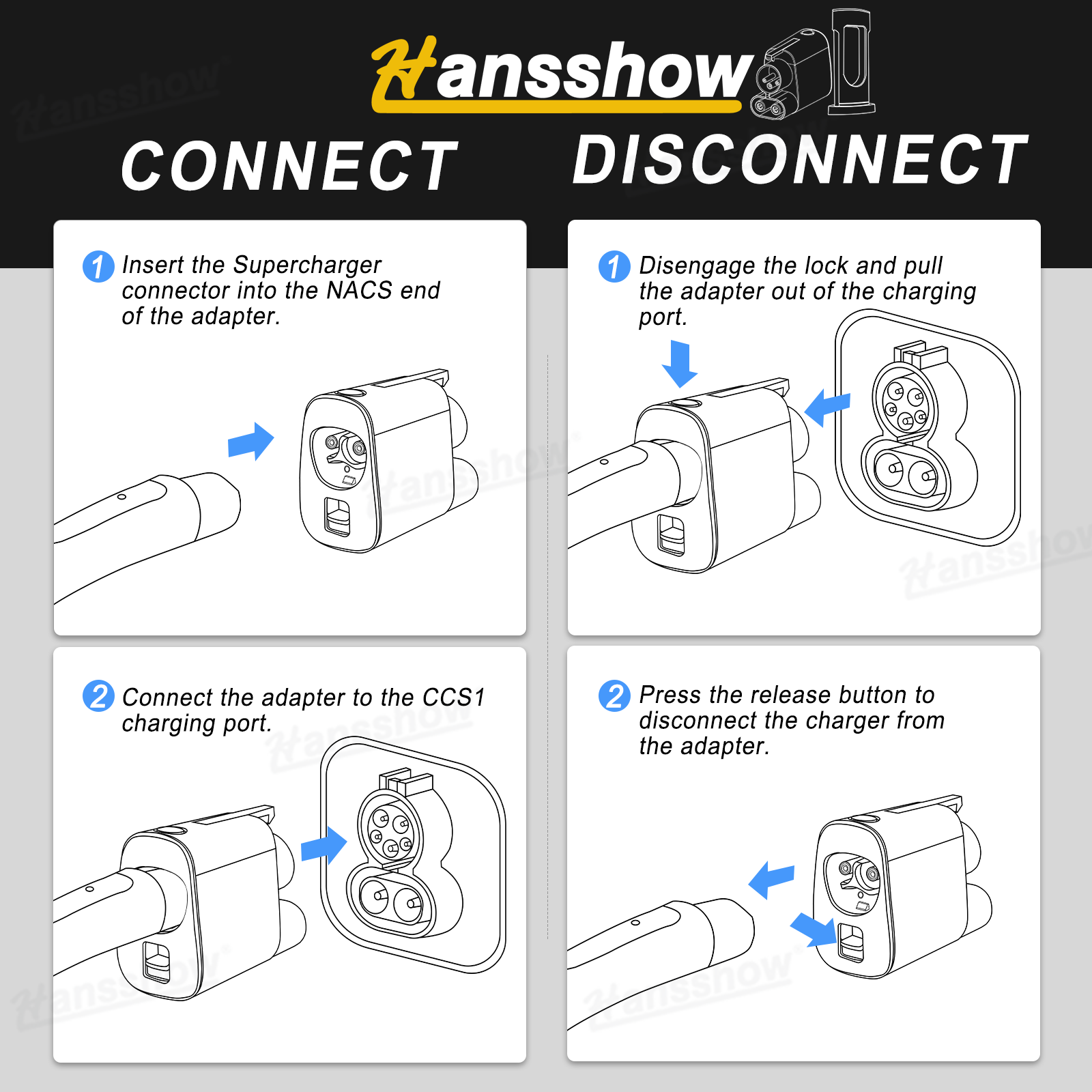 Durable & Easy To Use: Built to withstand high-speed charging, Hansshow NACS to CCS1 adapter ensures safety and reliability. It seamlessly converts your CCS1 EV charge port to be compatible with Tesla Superchargers, offering a hassle-free charging experience.