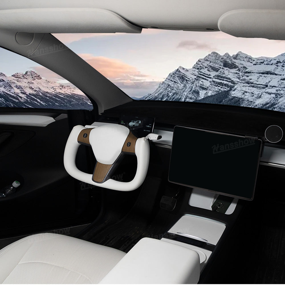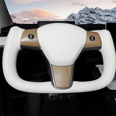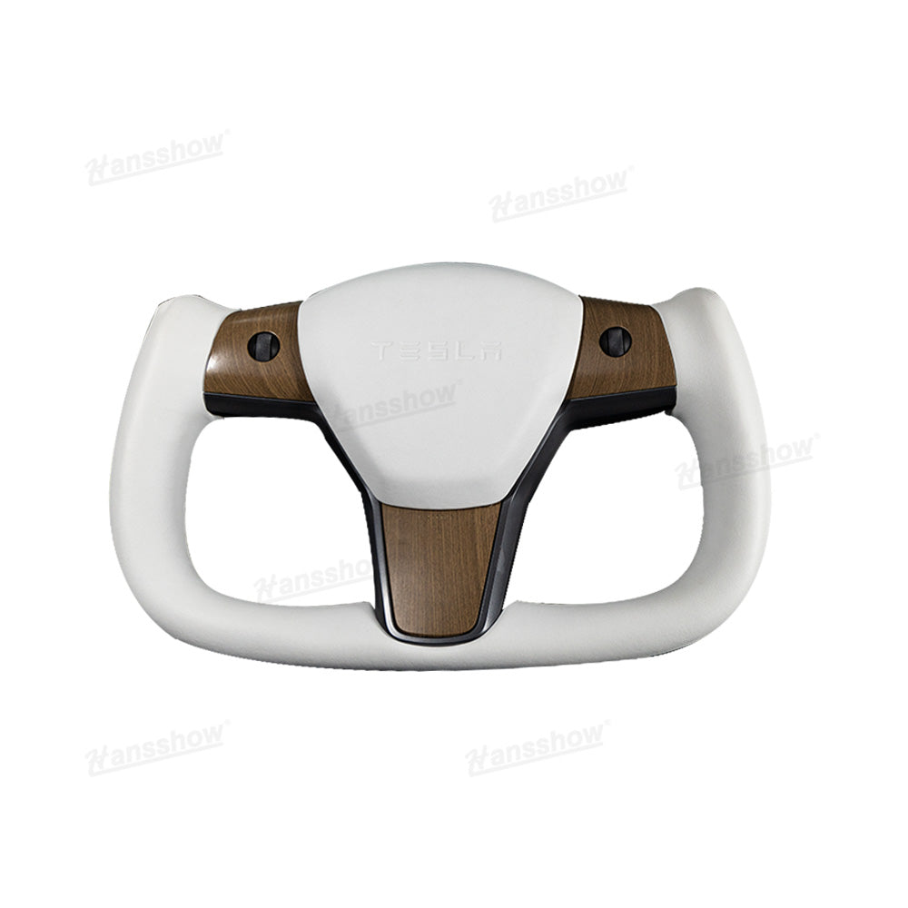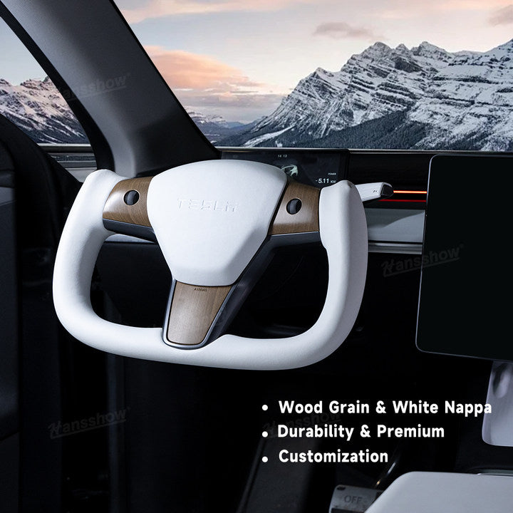 Tesla Model Y/3White Yoke Steering Wheel In Wood Grain With Nappa|Hansshow