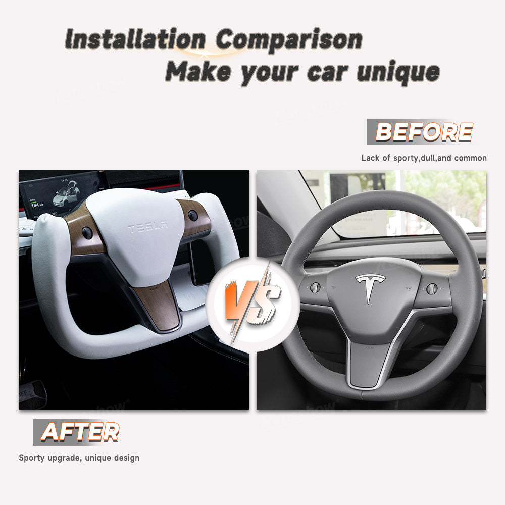 • Aesthetic Harmony: The wood grain texture of the steering wheel harmonizes seamlessly with your existing wood grain dashboard, creating a cohesive and luxurious interior look that elevates the overall ambiance of your Tesla Model Y.