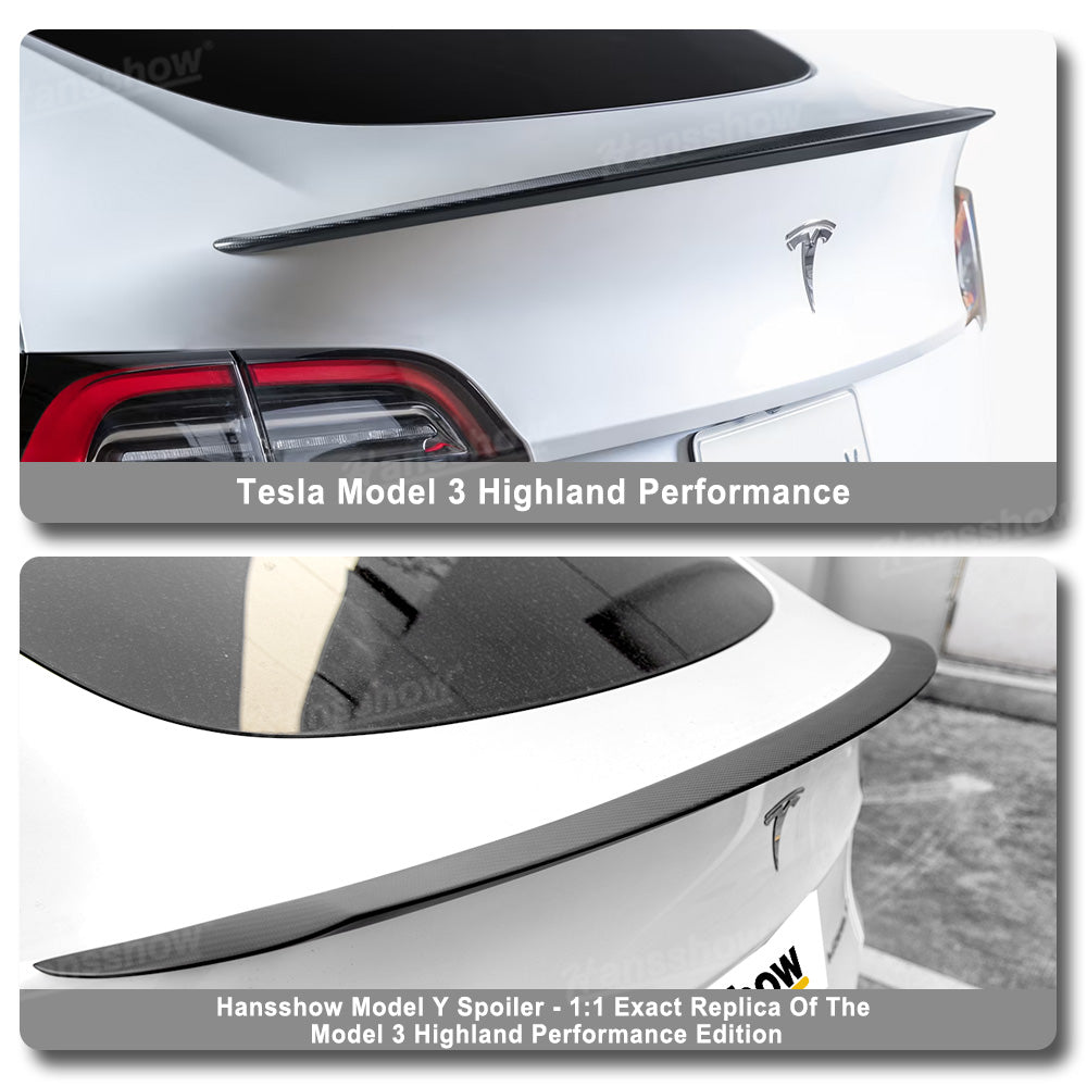 Moldel Y/Y Juniper Real Carbon Fiber Tail Spoiler Wing Rear Trunk Lid With Model 3 Performance Version Style | Hansshow