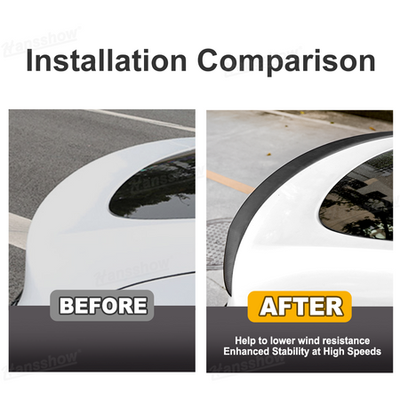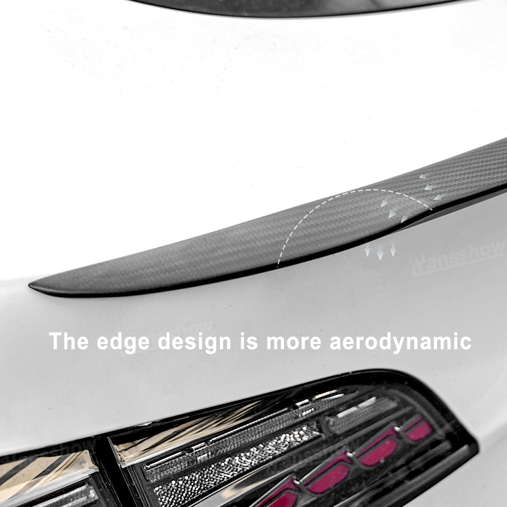 • Aerodynamic Design with Edged Contours:The unique design of Hansshow's Model Y/Y Juniper spoiler includes edges on both sides, which significantly improve the vehicle's aerodynamics. The contouring helps break up turbulent airflow, reducing drag and boosting efficiency, particularly at higher speeds.