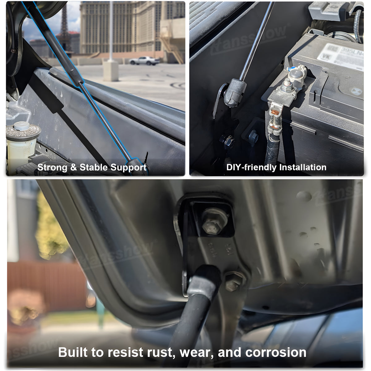No-drill Installation: Hansshow Front Hood Struts Upgrade Kit can be installed using the original screw holes, no drilling or cutting needed. DIY-friendly setup takes about 20 minutes with basic tools.